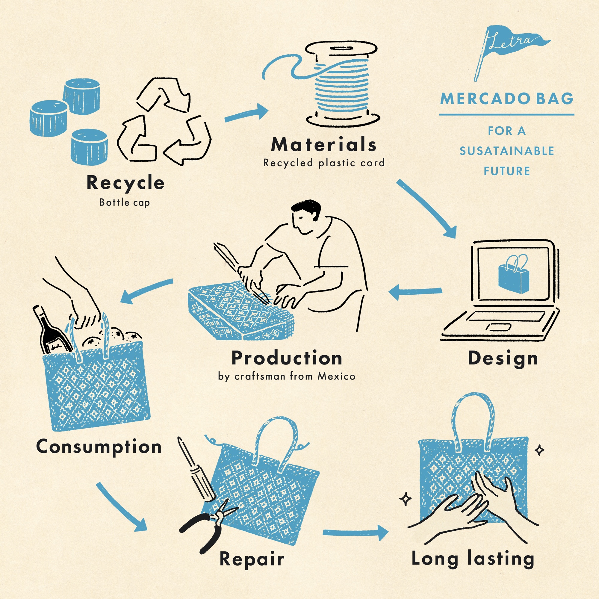 メキシコの手工芸「メルカドバッグ」を再生プラスチックコードで編み、10年級の耐久を掲げるLetraが2025年AW新作を投入。長期使用・修理・通年コーデ提案で、“買い替え前提”から“使い続ける前提”へ消費の重心をずらす。