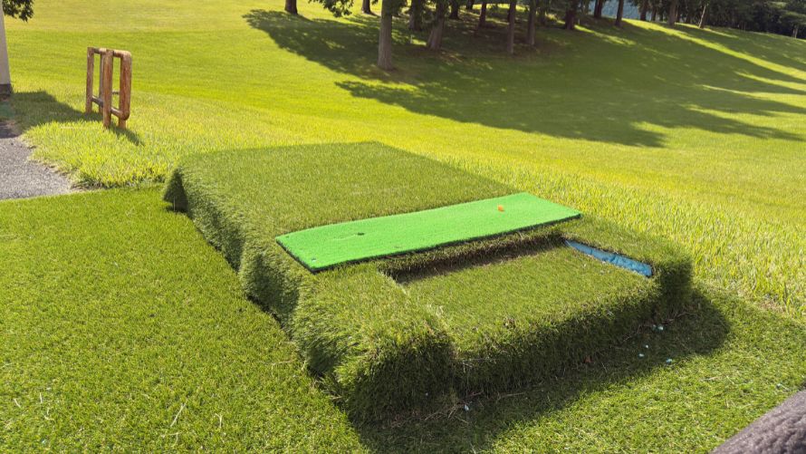 厚み約5センチの高麗芝プレートを、専用打席にセット。利用後は“使用済みラック”へ戻す。プレートは瑞穂町の芝畑へ送り返され、再生循環に入る。価格は1枚1,000円(税込)。サプライチェーンは短いほど強い。地元の芝生畑がバックエンドを担うことで、輸送と在庫のムダも削れる。コース管理の知見が、練習設備の運用に接続される。