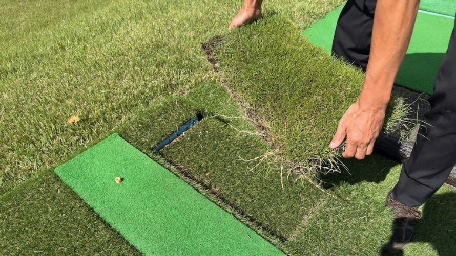 大箱根カントリークラブが、ゴルフの打席にセットする天然芝キット「SHIBAHUプレート」を導入。人工芝マットの定期交換で生じる産業廃棄を抑えつつ、本番に近い打感を提供する“循環×実戦”の練習環境を整えた。