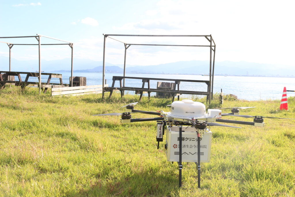 【空路で命をつなぐドローン物流】南海トラフを想定、今治~大島「10分の医療物資輸送」を実証【今治市×イームズロボティクス】