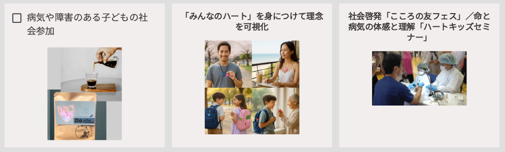 第二に、参加の導線。寄付、イベント、身に着ける、シェアする——関与の入口を複数用意することで、支援は“習慣”になる。
