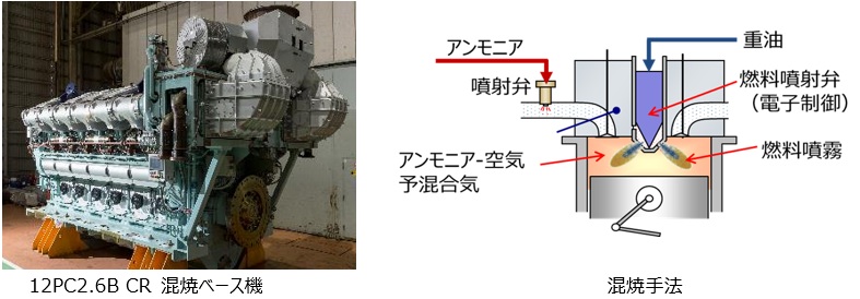 今回JFEが商品化したのは、フランスのEverllence France社(旧MAN Energy Solutions France)が手がける4ストロークPCシリーズ、S.E.M.T. Pielstick PC2.6B CRをベースにした大型中速エンジンだ。3気筒試験機でのアンモニア混焼実証を経て、出力7.7〜11.5MWのクラスでアンモニア熱量比50%超の混焼を実現している。