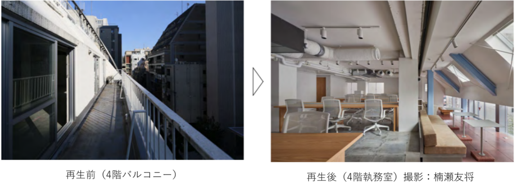 この設計が面白いのは、「古い建物を保存した」のではなく、「渋谷という立地と今のマーケットに合う姿に再編集した」ことだ。外部委員会の講評でも、地域性を踏まえた改修内容、スタートアップ向けのリーシング戦略、新築級の賃料水準の実現などが評価されている。再生建築は、ノスタルジーでは回らない。市場に刺さって初めて成立する。